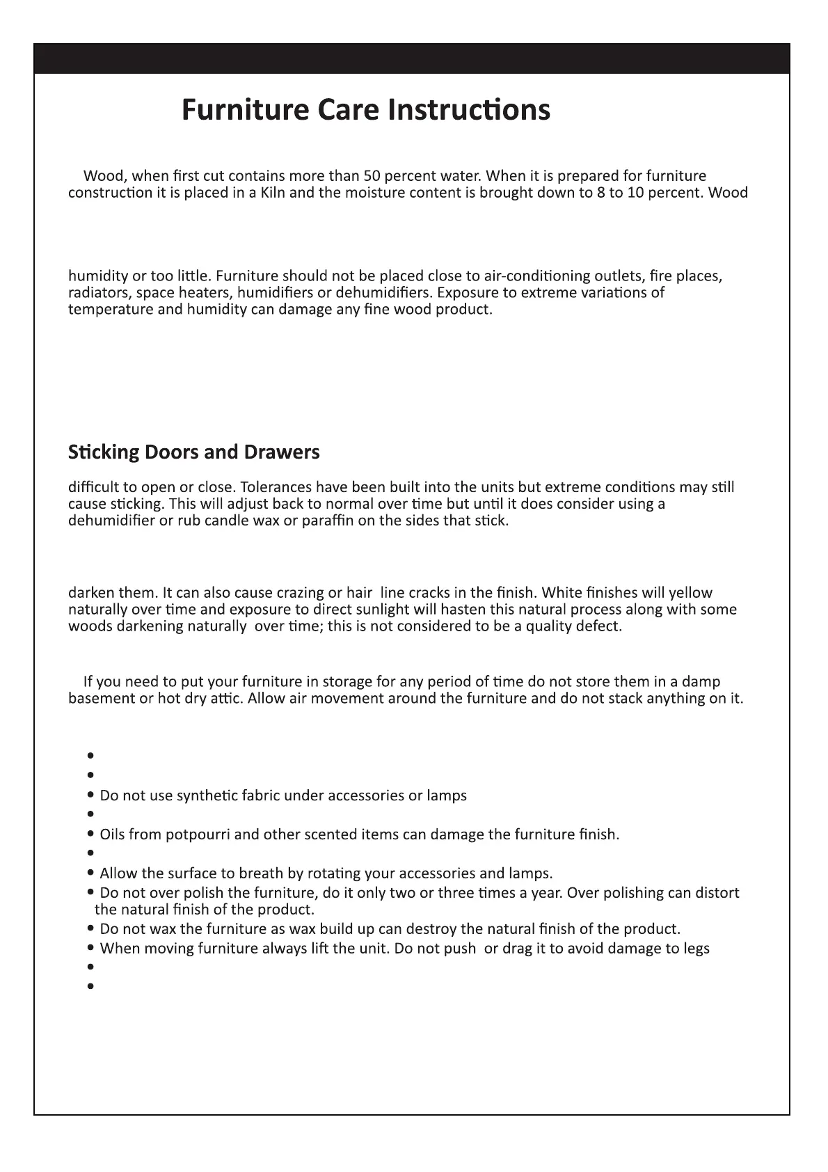Keep the furniture level so doors and drawers open and close freely.