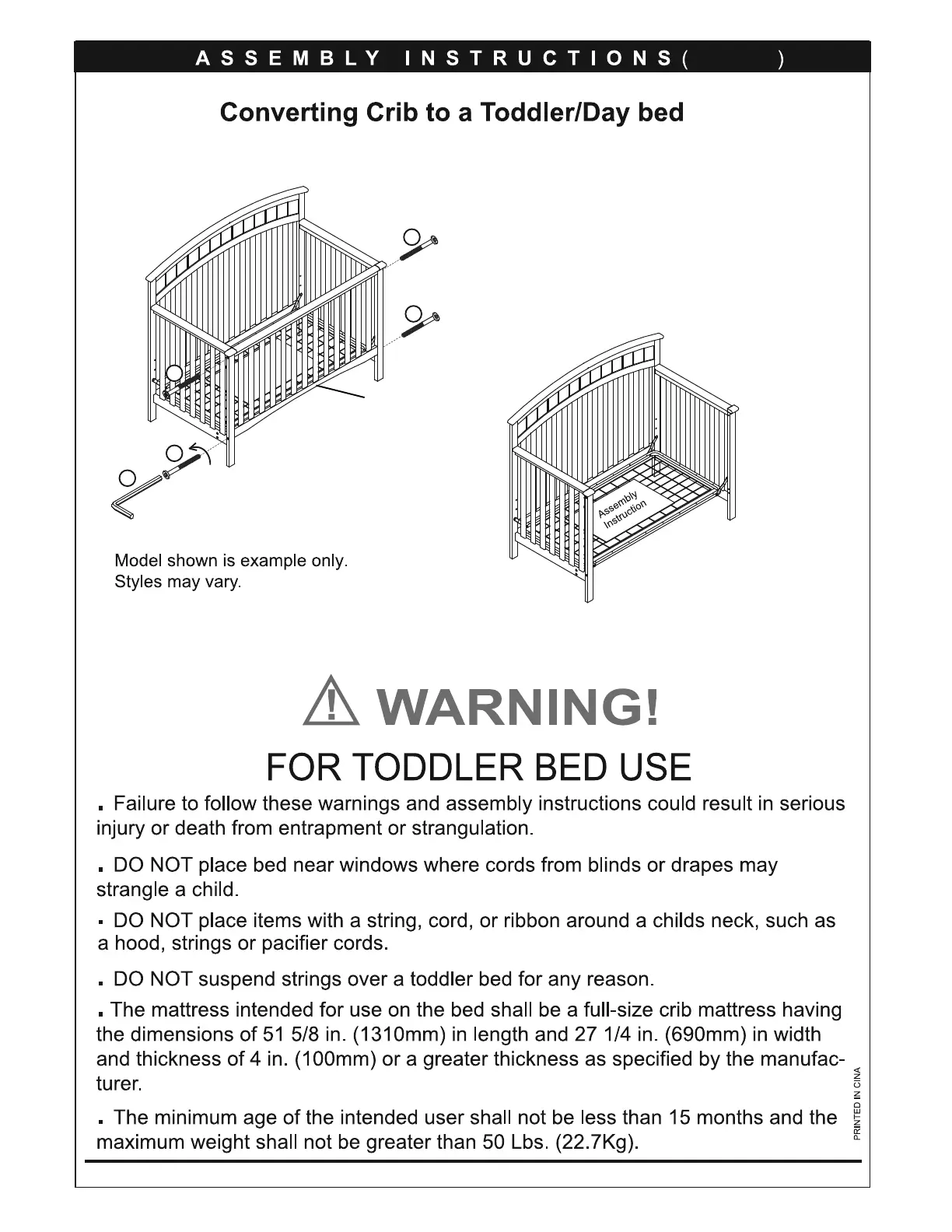 Graco 04540-531 - Convert to Toddler;Day Bed; Toddler Bed Use Warnings