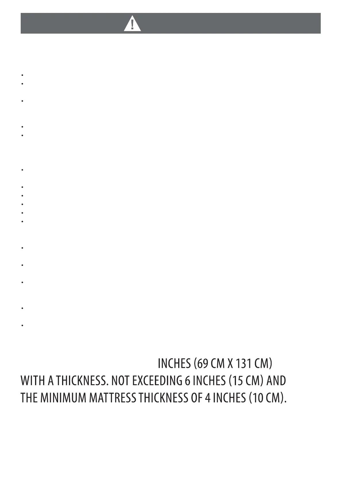 CAUTION: ANY MATTRESS USED IN THIS CRIB SHALL BE