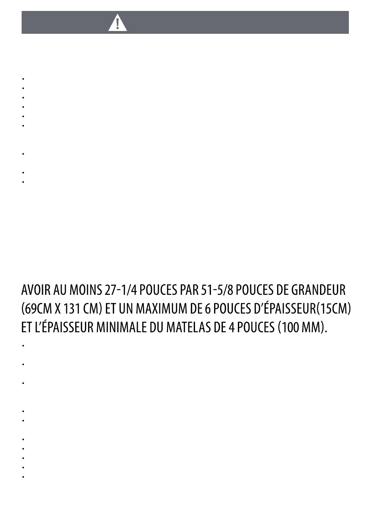 MISE EN GARDE TOUT MATELAS UTILISE DANS CE LIT DOIT