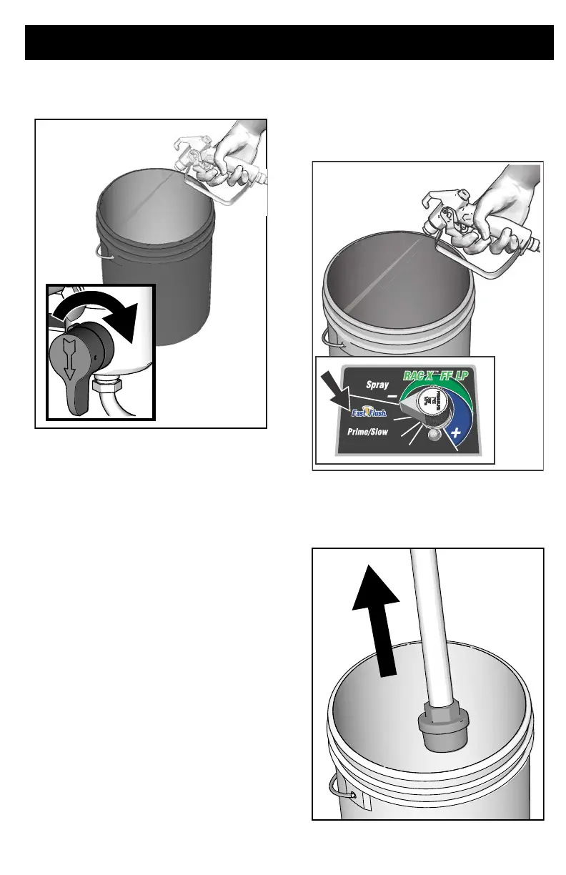 7. To flush airless hose and spray gun, turn
