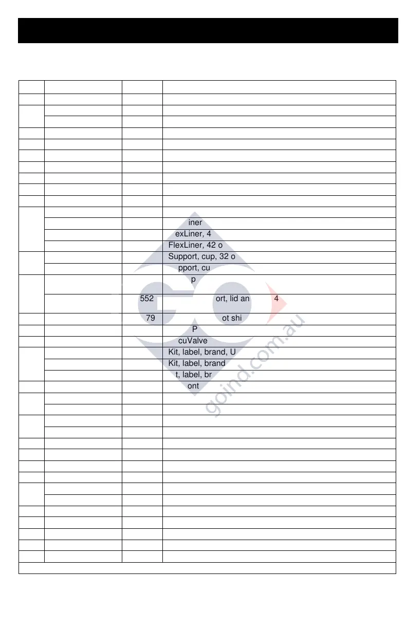 17P552 Kit, cup support, lid and plug 42 oz. includes 13, 1 of 14, 15,