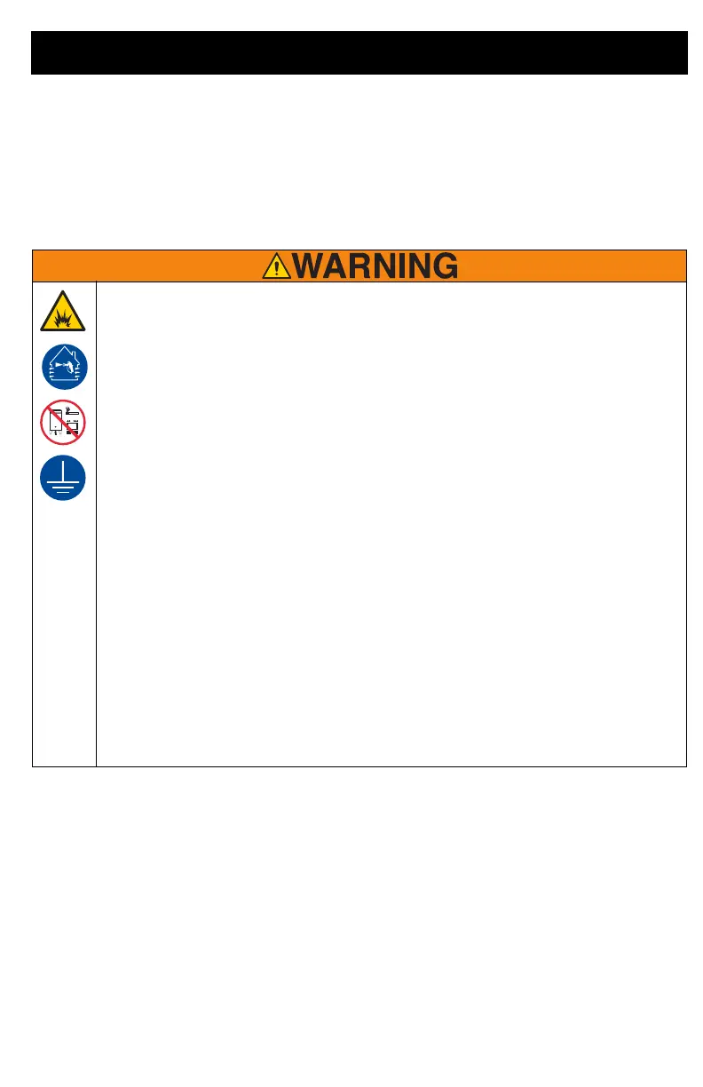 • Sprayer generates sparks. Do not spray or flush with flammable materials.