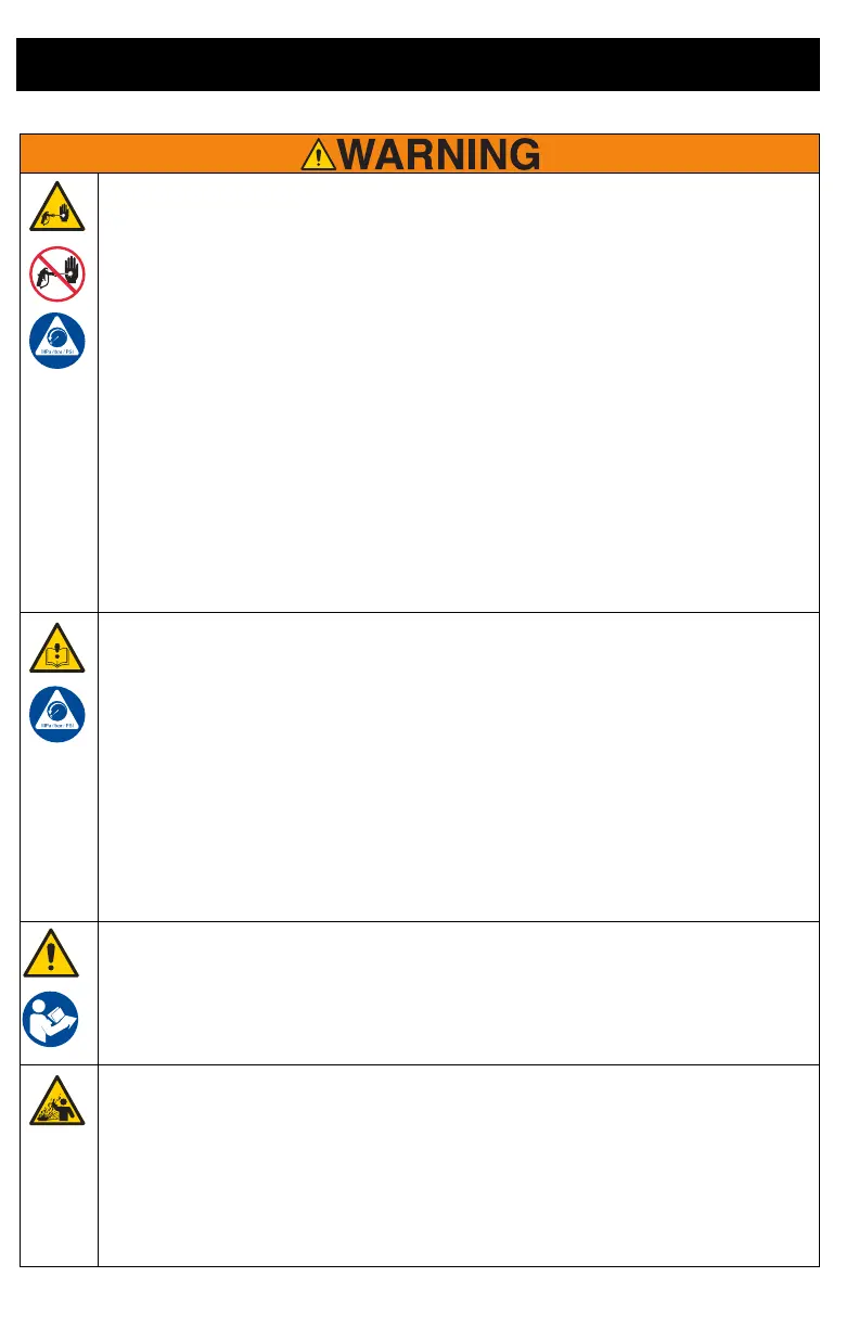 • Use caution when cleaning and changing spray tips. In the case where the spray tip clogs