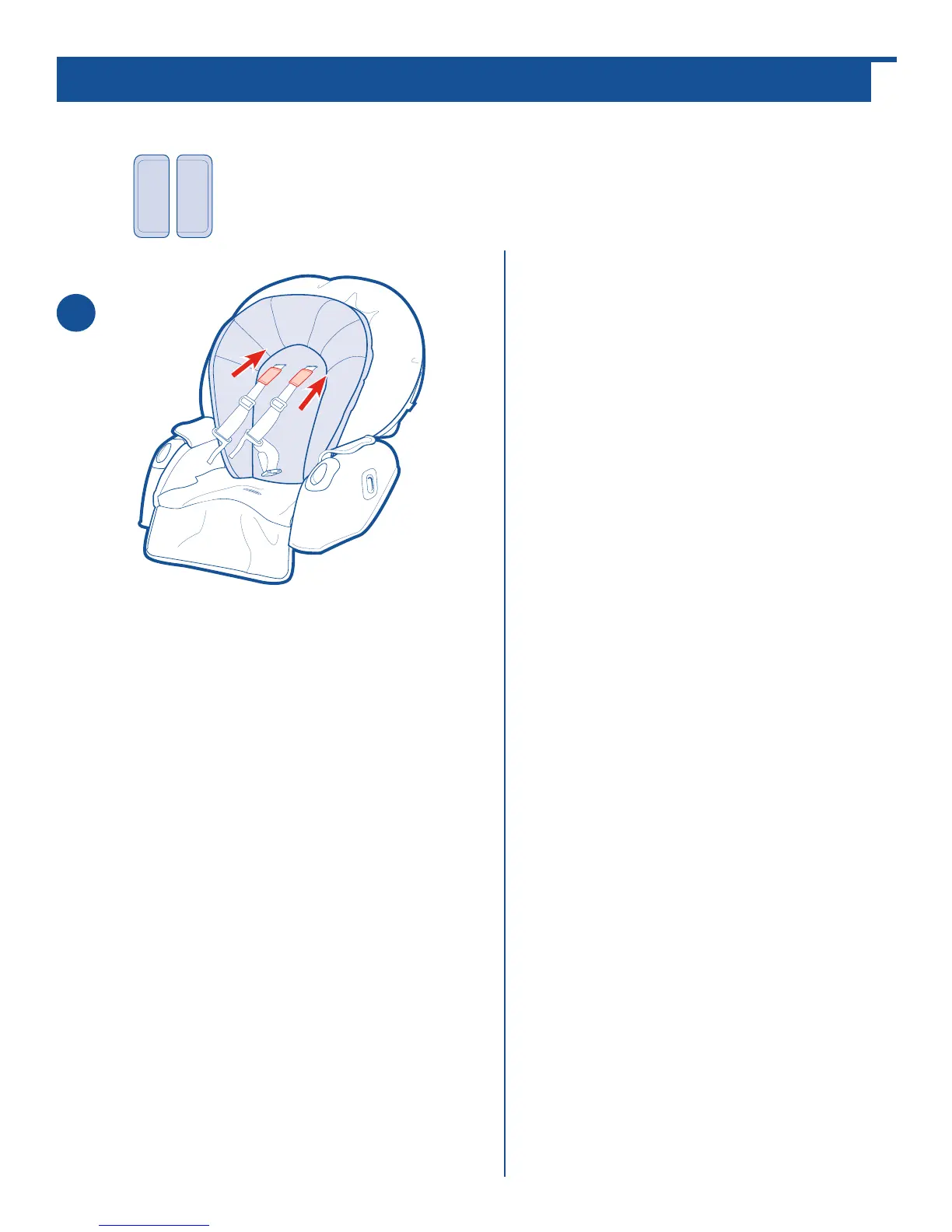 Slide harness covers onto shoulder straps.