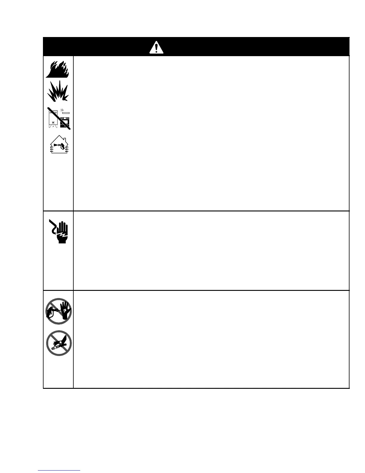 D Do not plug or unplug power cords, or turn lights on or off when flammable fumes are present.