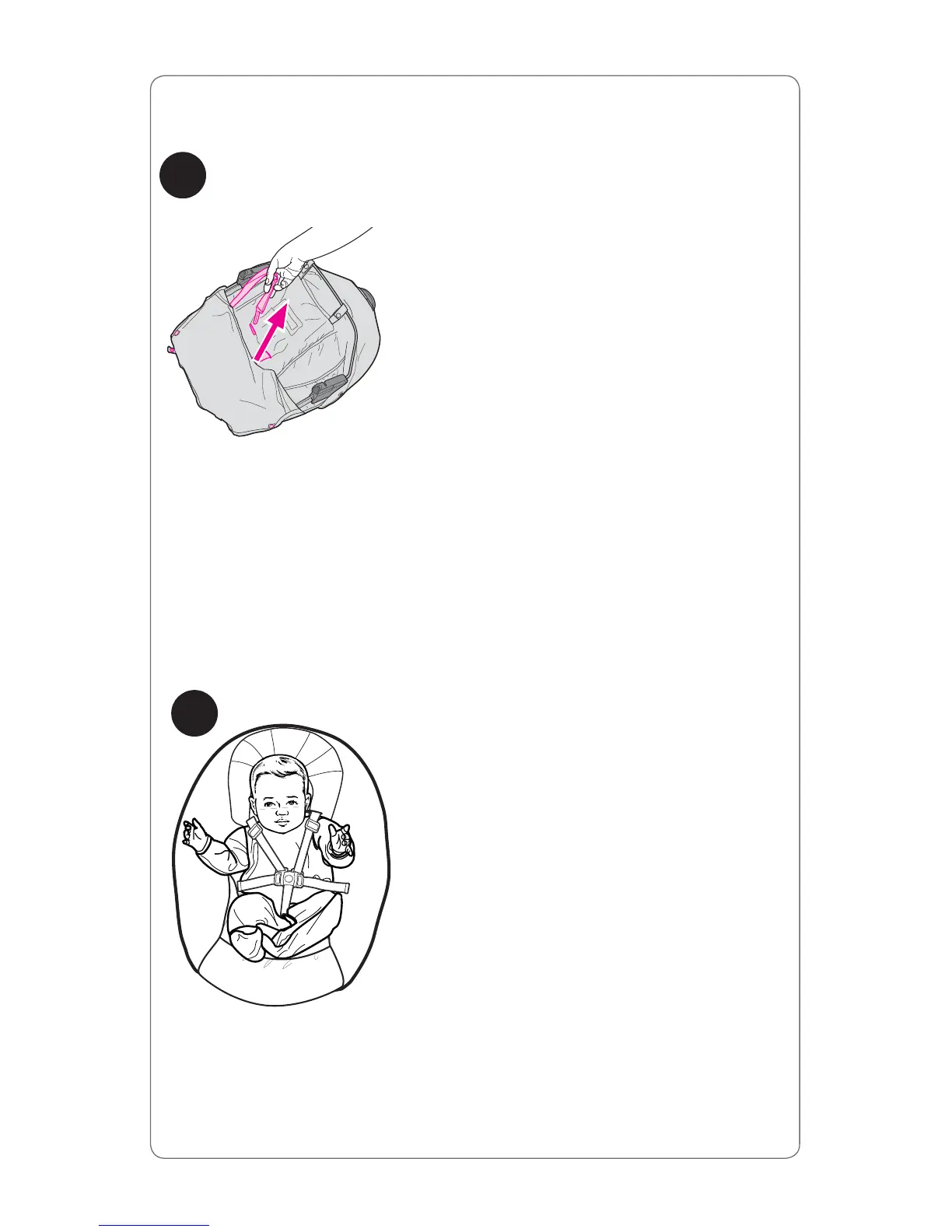 straps. Pull harness straps out of slots in seat