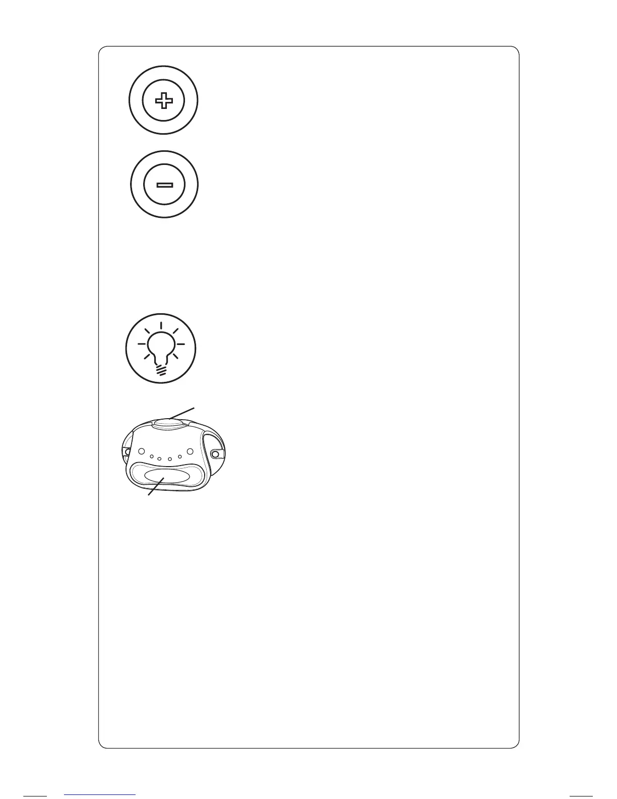 VOLUME— Press the plus (+) to raise the volume