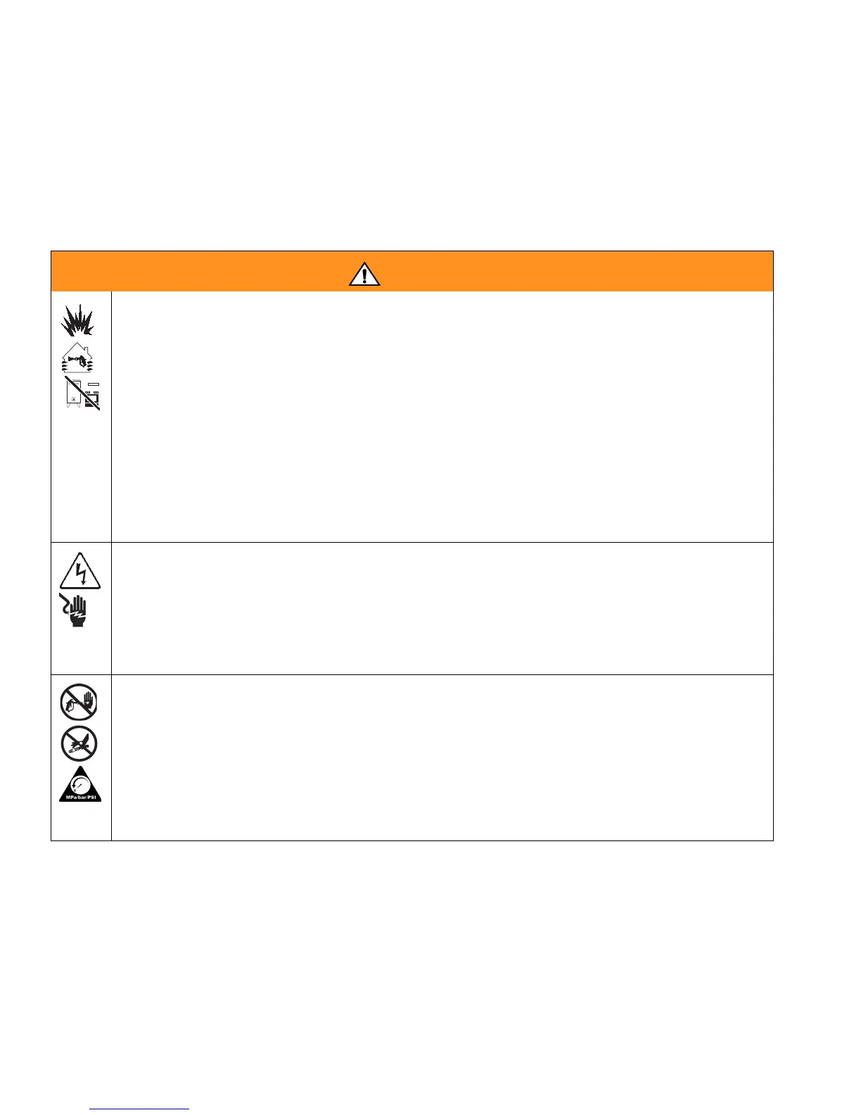• Sprayer generates sparks. When flammable liquid is used in or near the sprayer or for flushing or