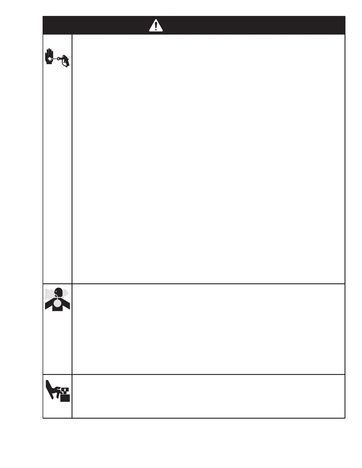 Spray from the gun, leaks or ruptured components can inject fluid into your body and cause ex-