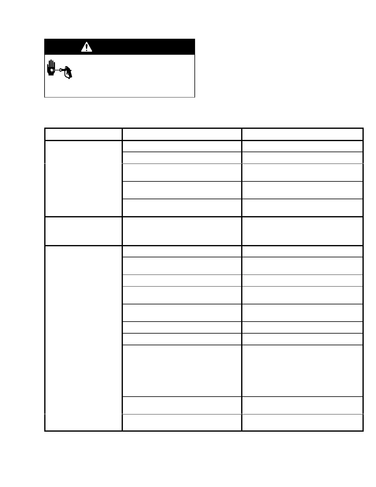 Check everything in the chart before disassembling the sprayer. See pages 40 through 43 for description of