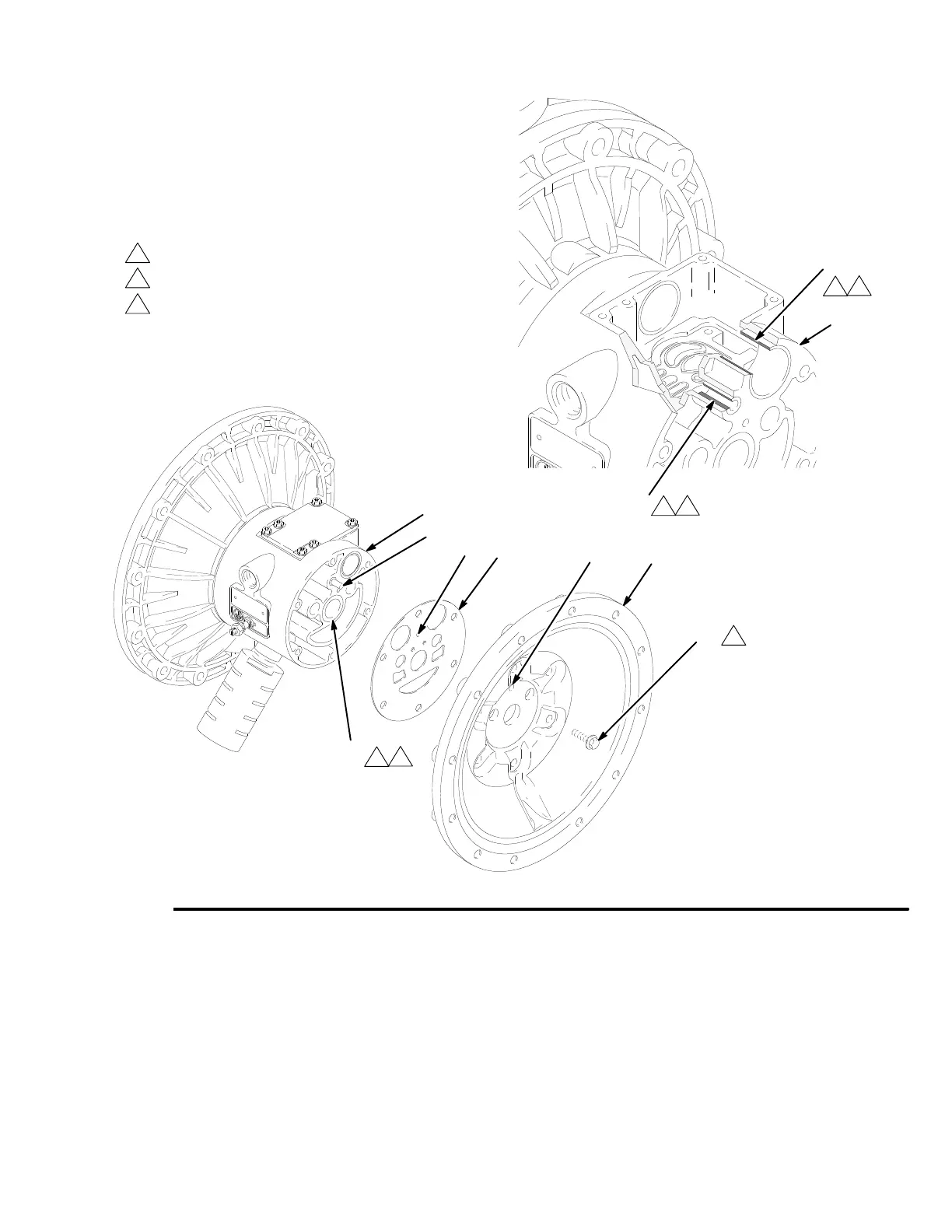 Press-fit bearings flush with surface of center housing (1).