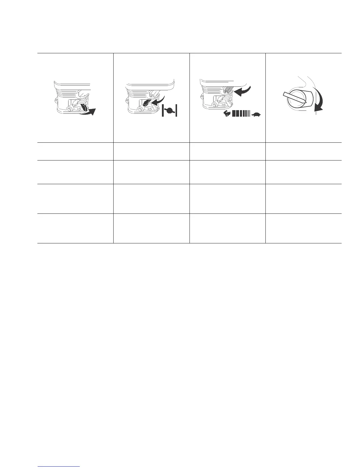 a Move fuel valve to open. b Move choke to closed. c Set throttle to fast. d Set engine switch to ON.