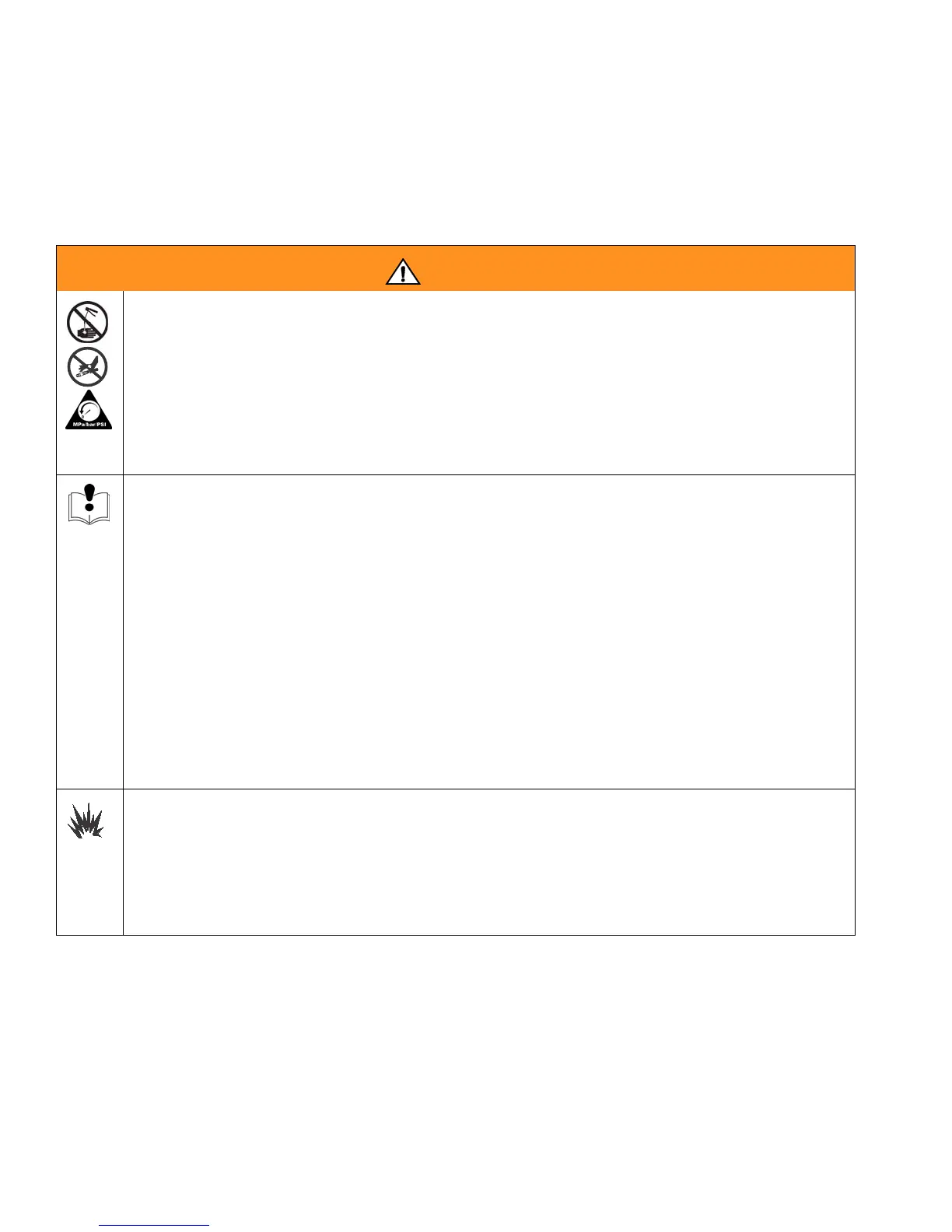• Follow Pressure Relief Procedure in this manual, when you stop spraying and before cleaning,