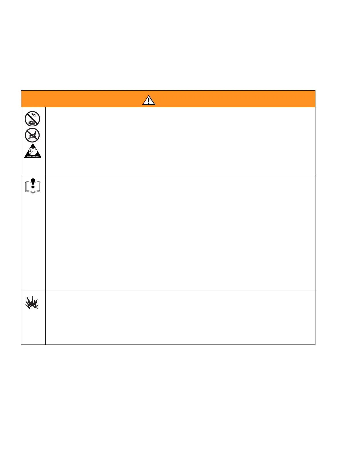 • Follow Pressure Relief Procedure in this manual, when you stop spraying and before cleaning,