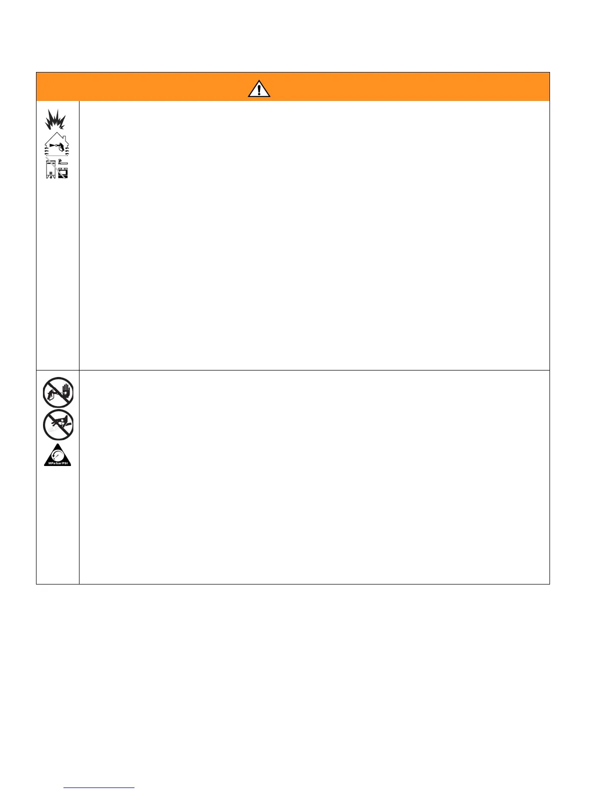 • Sprayer generates sparks. When flammable liquid is used in or near the sprayer or for flushing or cleaning, keep
