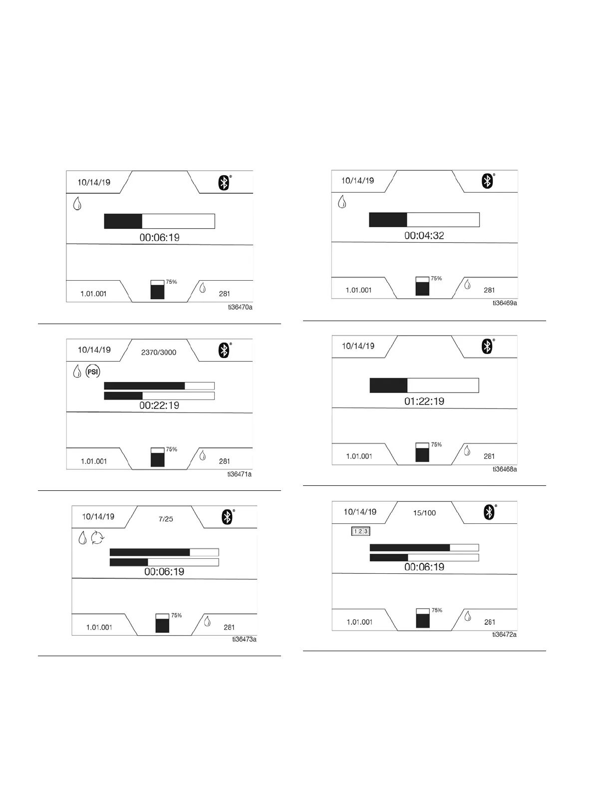 Refer to the following illustrations for examples of typical operation screens.