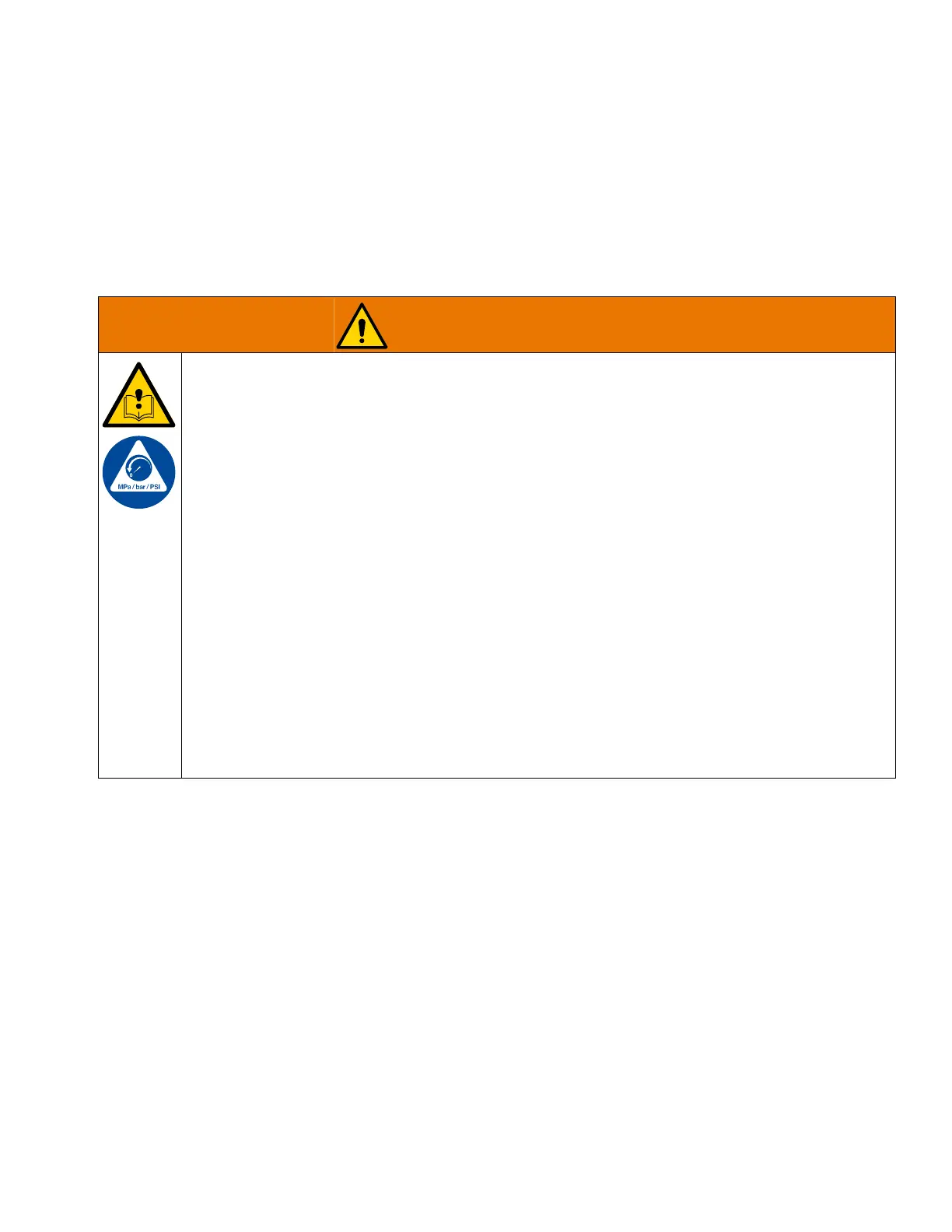 • Turn off all equipment and follow the Pressure Relief Procedure found in the related pump manual