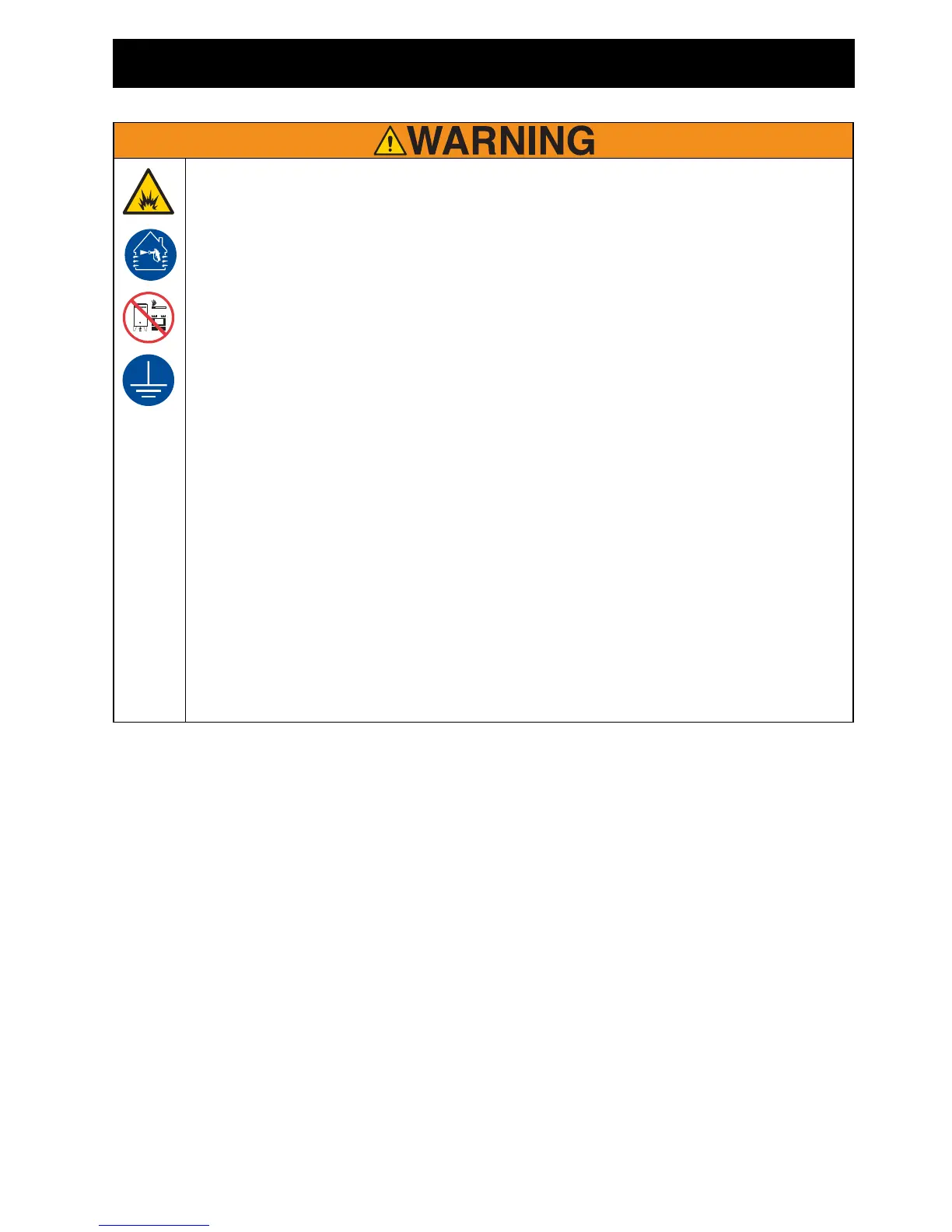 • Sprayer generates sparks. Keep pump assembly in a well ventilated area at least 20 feet