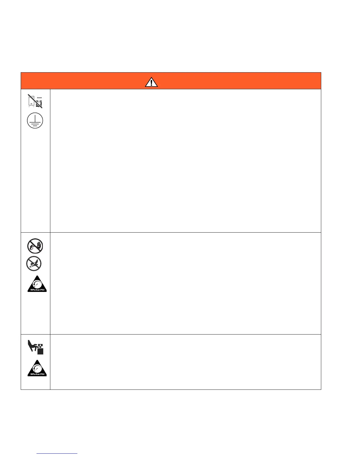 • Follow the Pressure Relief Procedure when you stop spraying and before cleaning, checking, or