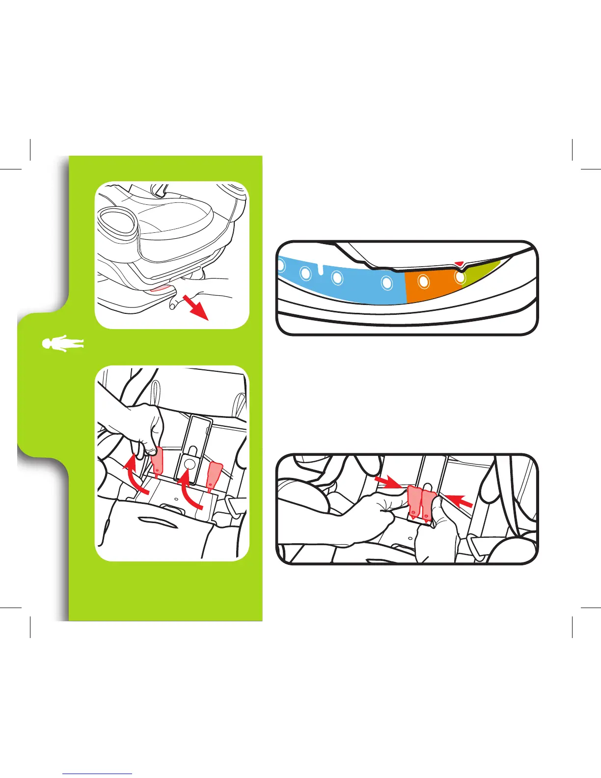 8. Levante la traba del respaldo rojo