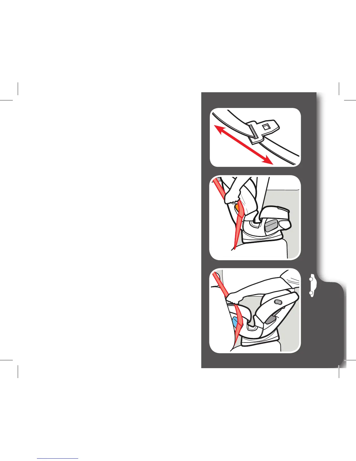 hacia afuera. Pase el cinturón de seguridad
