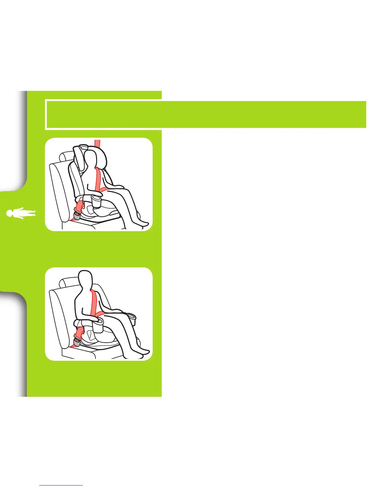 • Vehicle belts MUST lie flat against child and