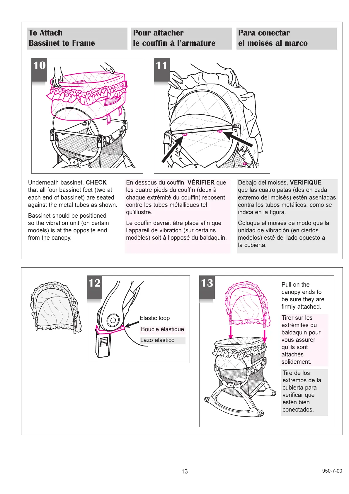 each end of bassinet) are seated