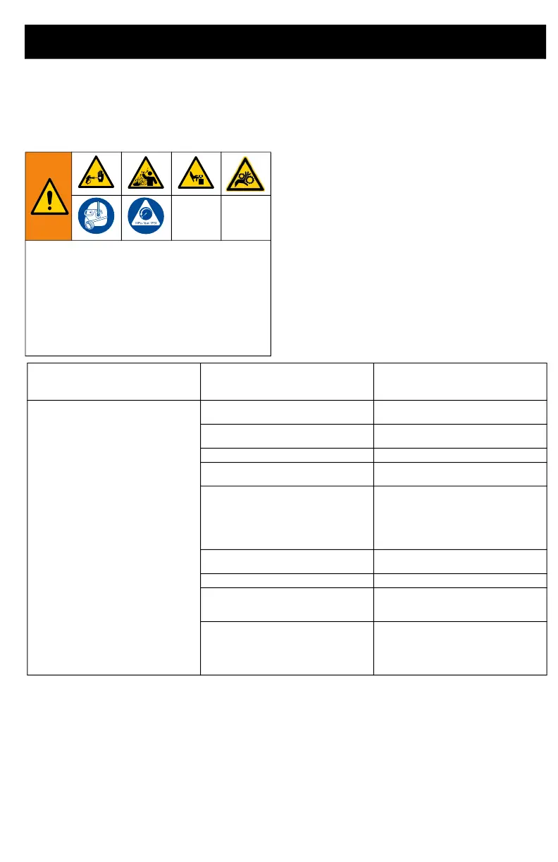 Pump output is low Spray tip worn. Replace tip. See separate gun or tip