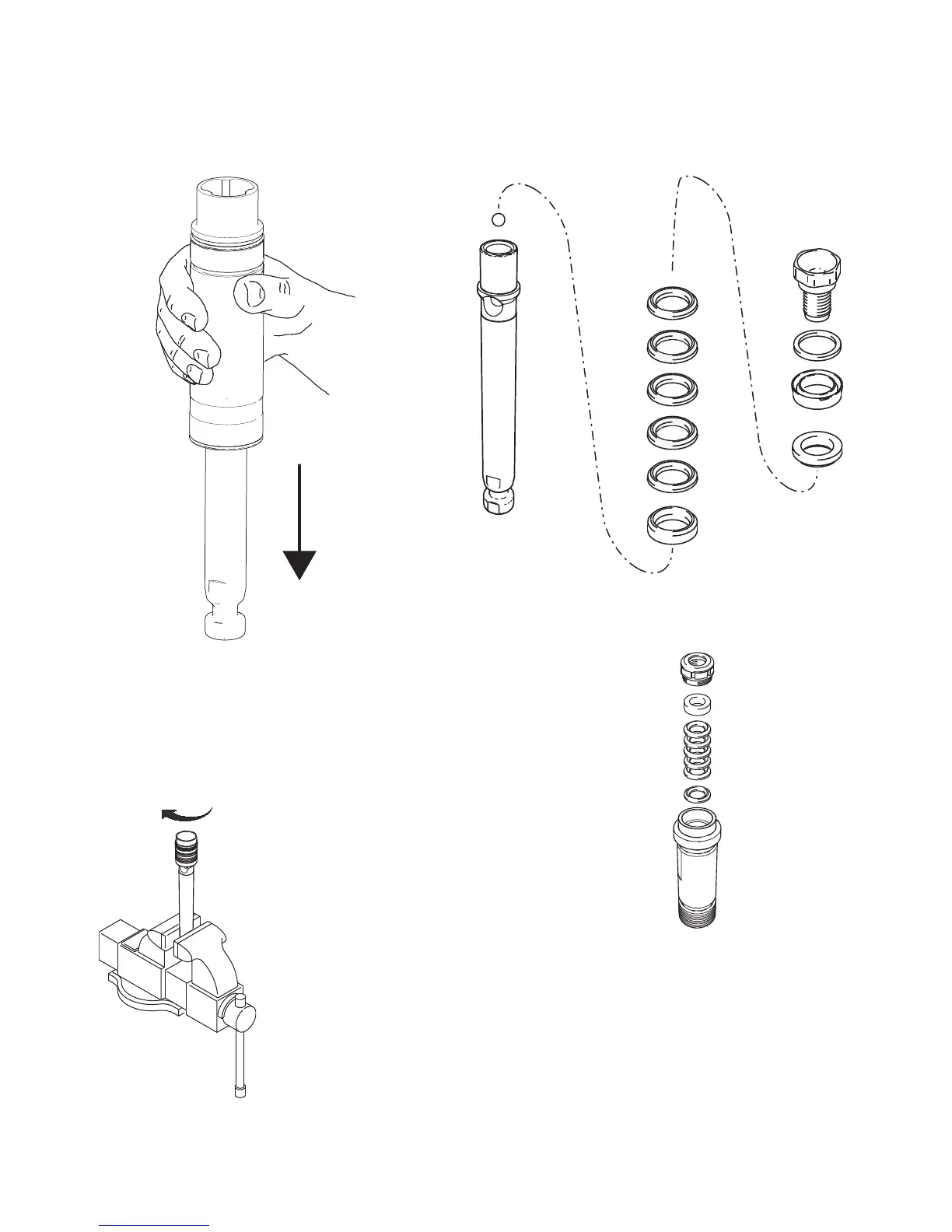 6. Unscrew piston valve from piston rod. Clean and