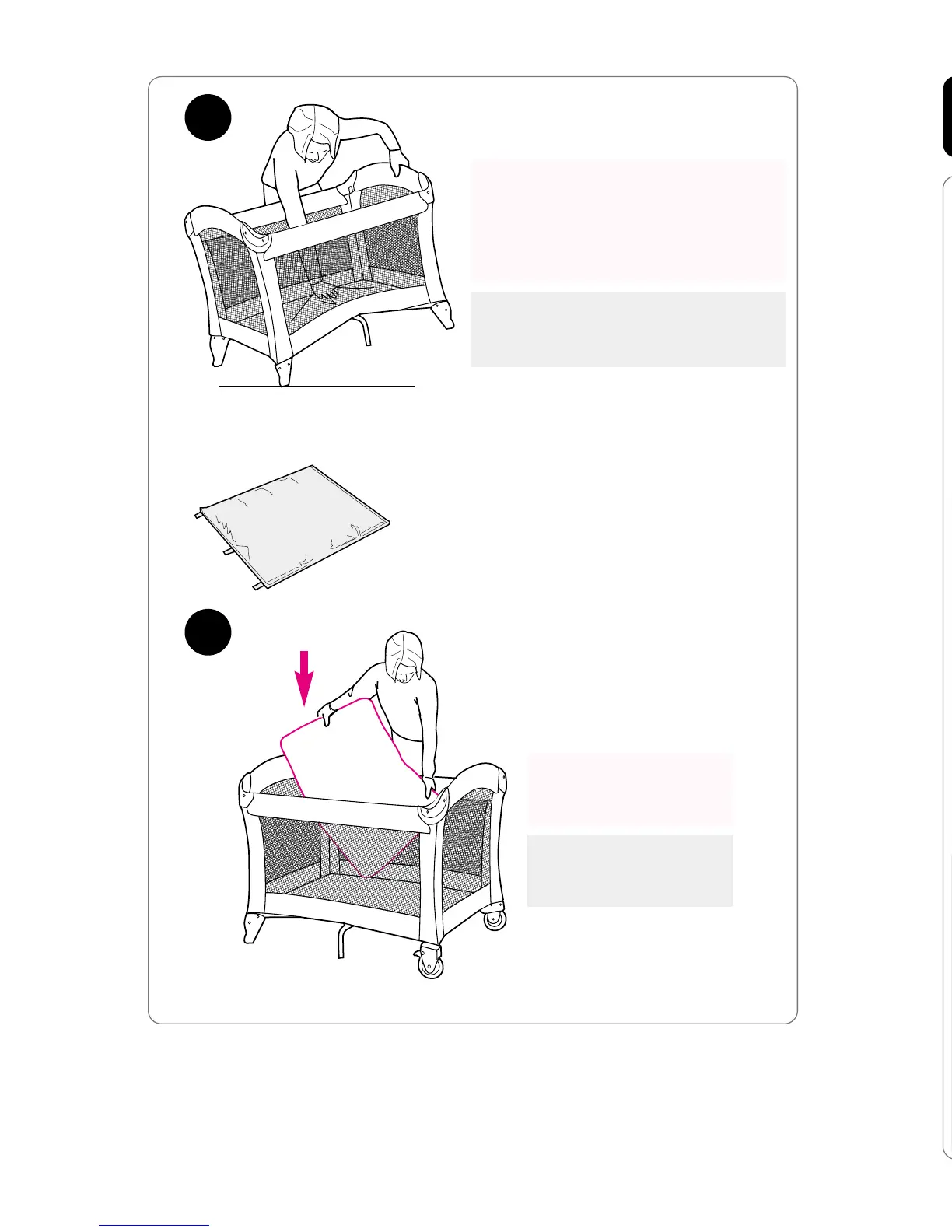 pinzas, etc.) al Pack ’N Play según las instrucciones. Verifíquelos