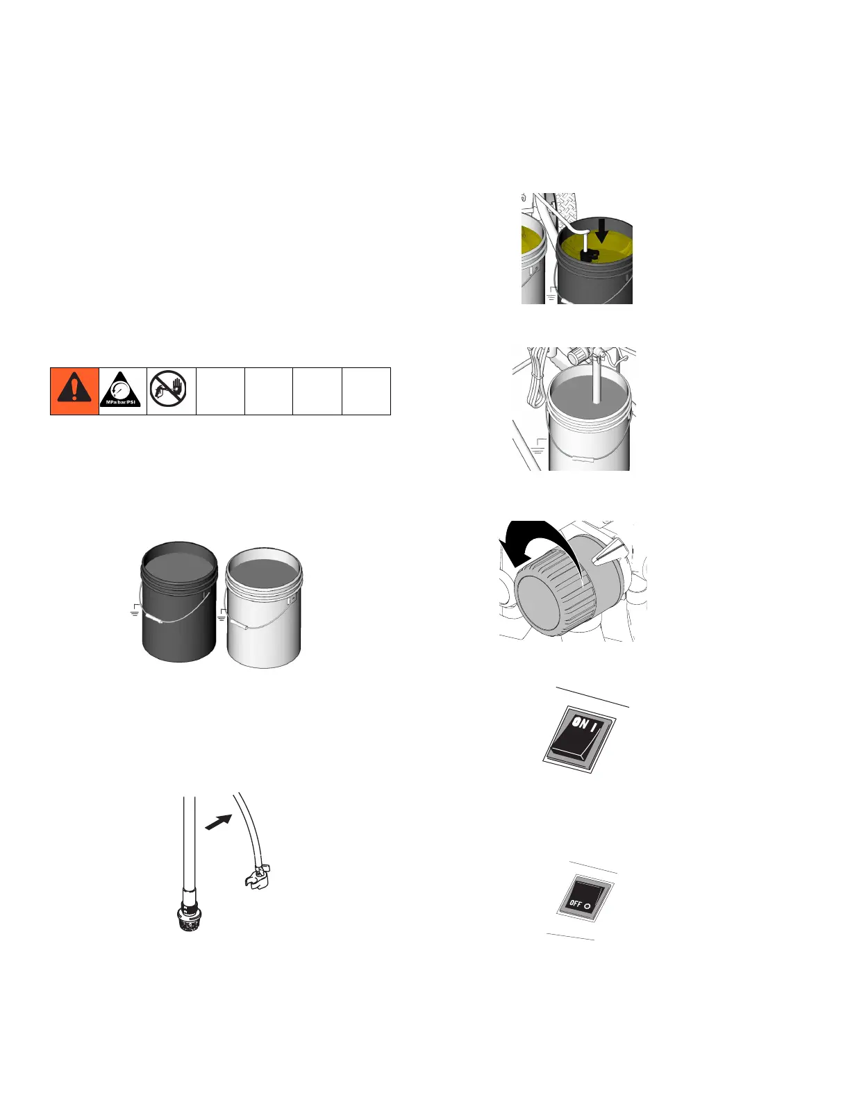 4. Lift suction tube and prime tube from paint pail. Let