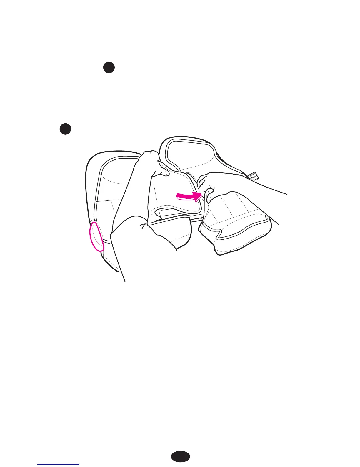 Flip seat over and insert the fabric from the head