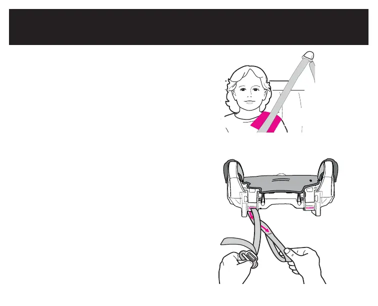 The shoulder belt MUST lie across child’s