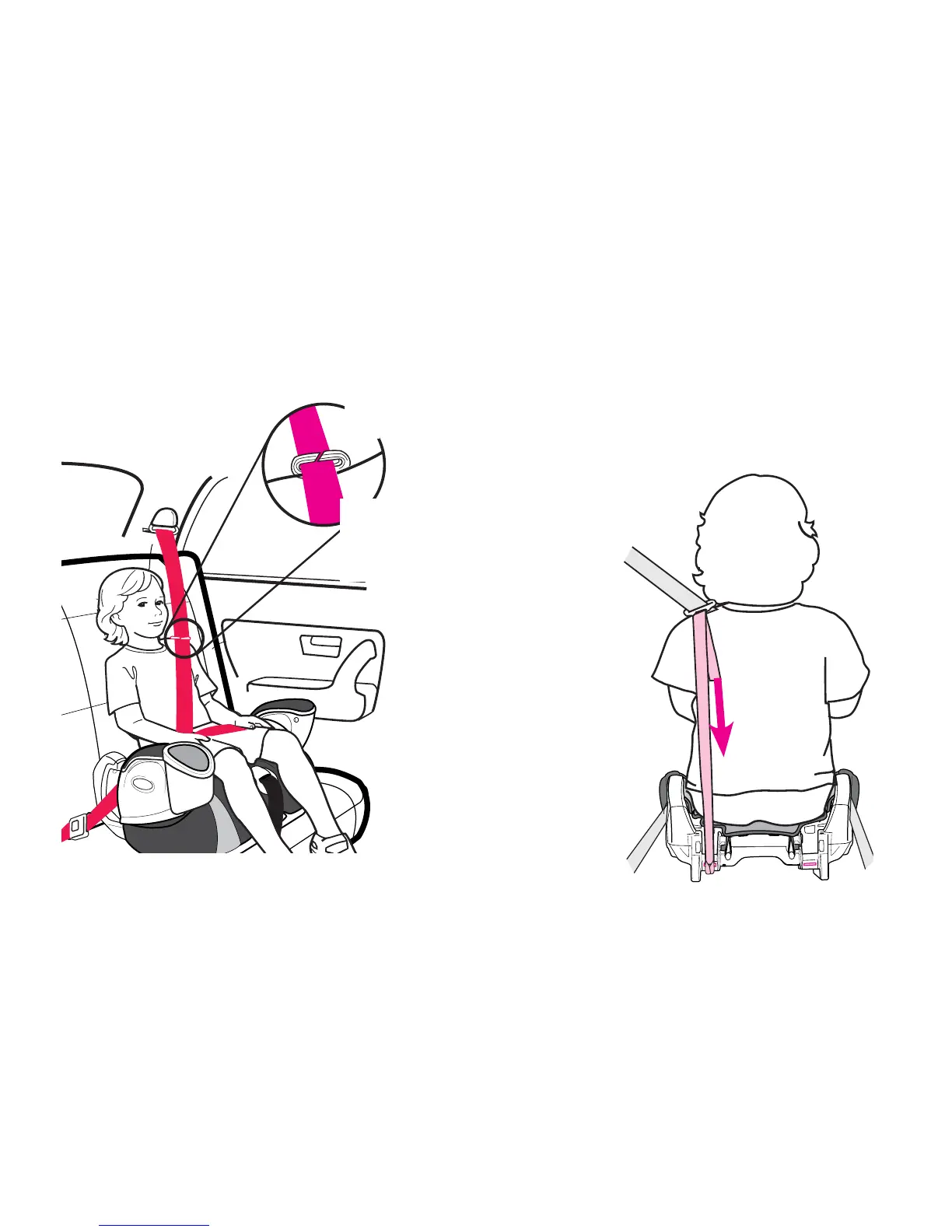 4. Deslice el cinturón del hombro del vehículo por la traba como se indica y tire el extremo libre