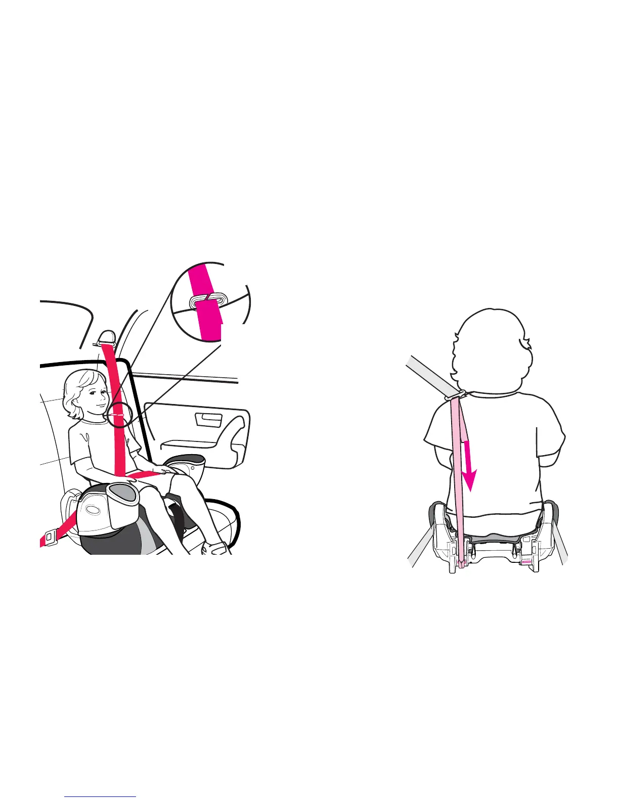 4. Slide the vehicle shoulder belt onto the clip as shown and pull free end of strap down to