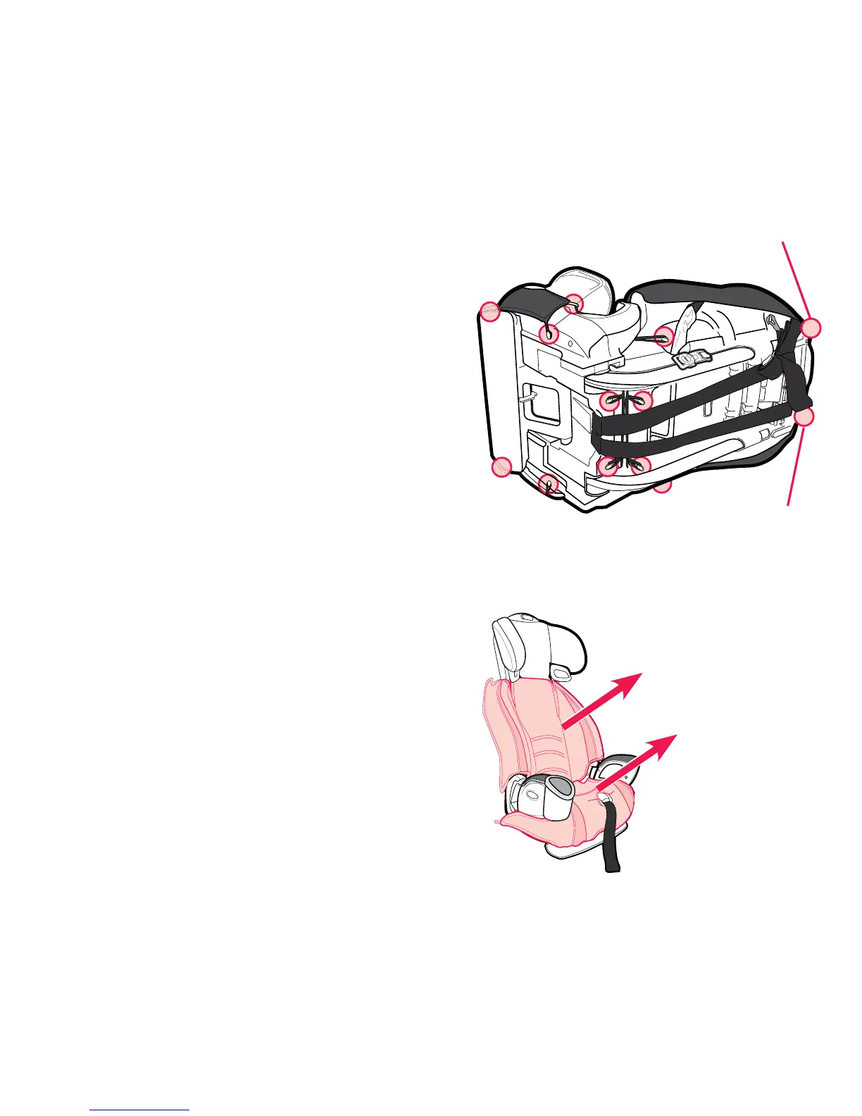 2. Remove elastic loops from seat as indicated