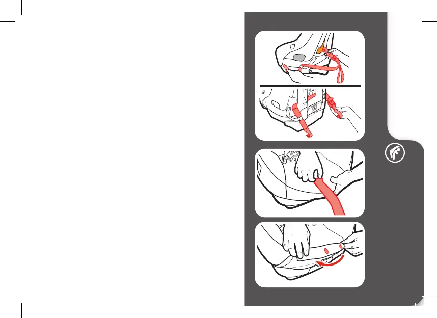 Pull the harness adjustment strap through pad. Replace