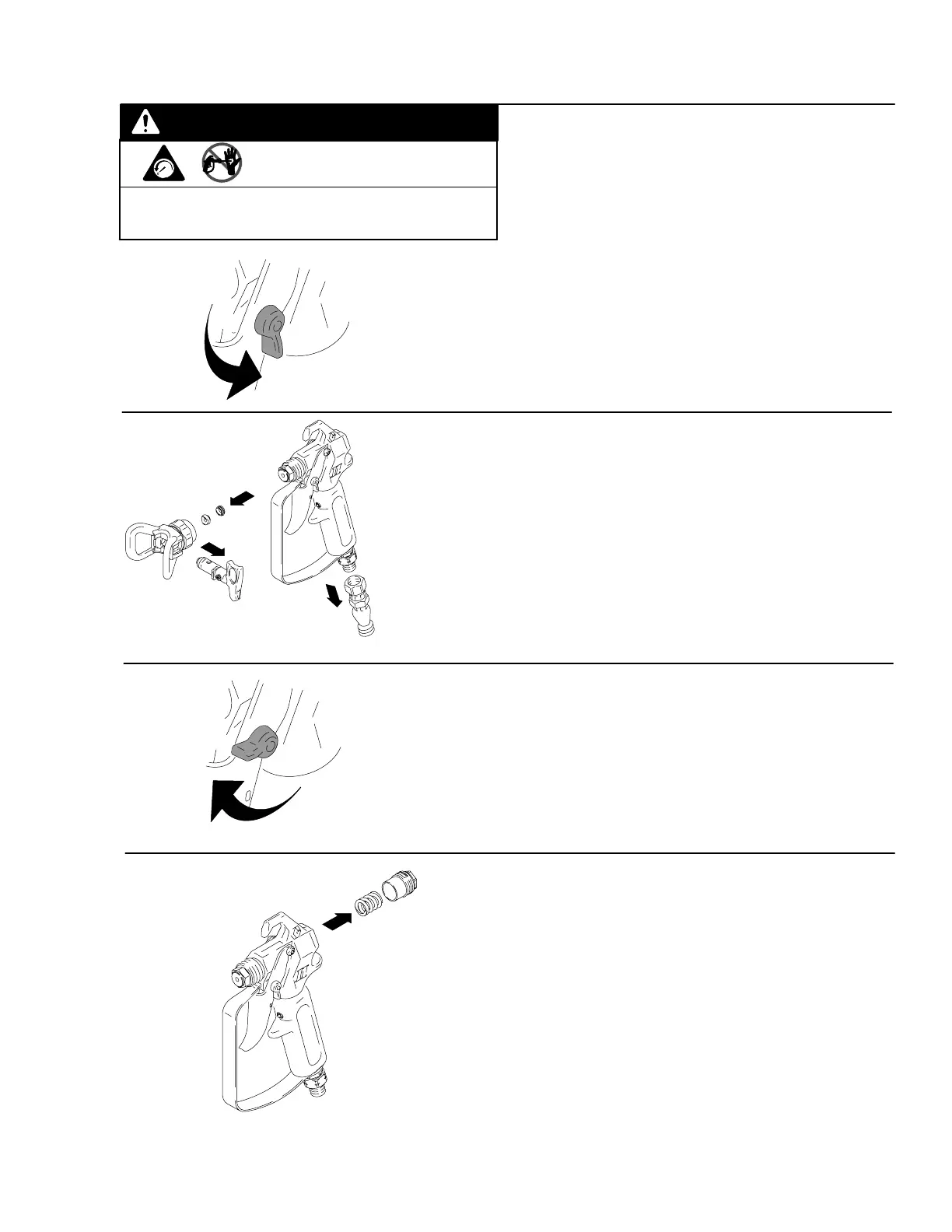 2. Remove tip and guard and disconnect gun from fluid hose.