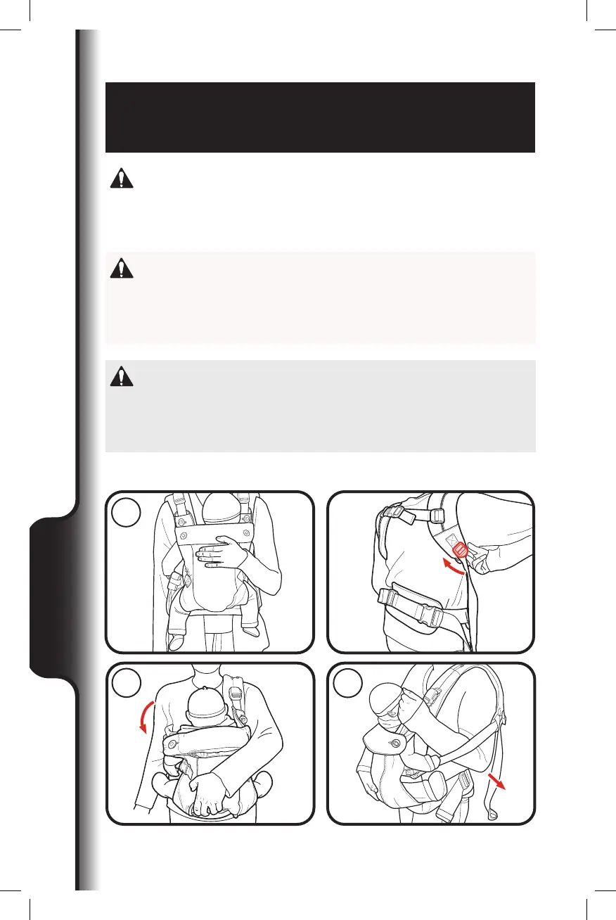 veces sin el niño en el portabebés, antes de hacerlo con el niño. NUNCA lleve al