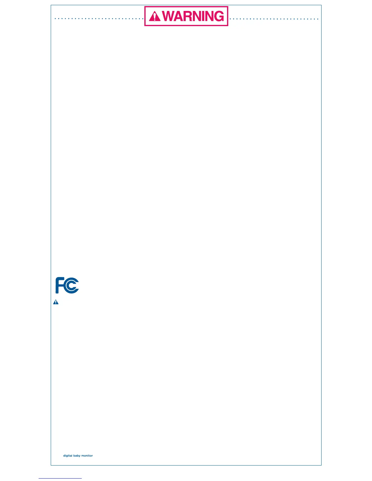 • DO NOT OPEN THE NURSERY UNIT OR PARENT UNITS OR ADAPTERS. No user-serviceable parts