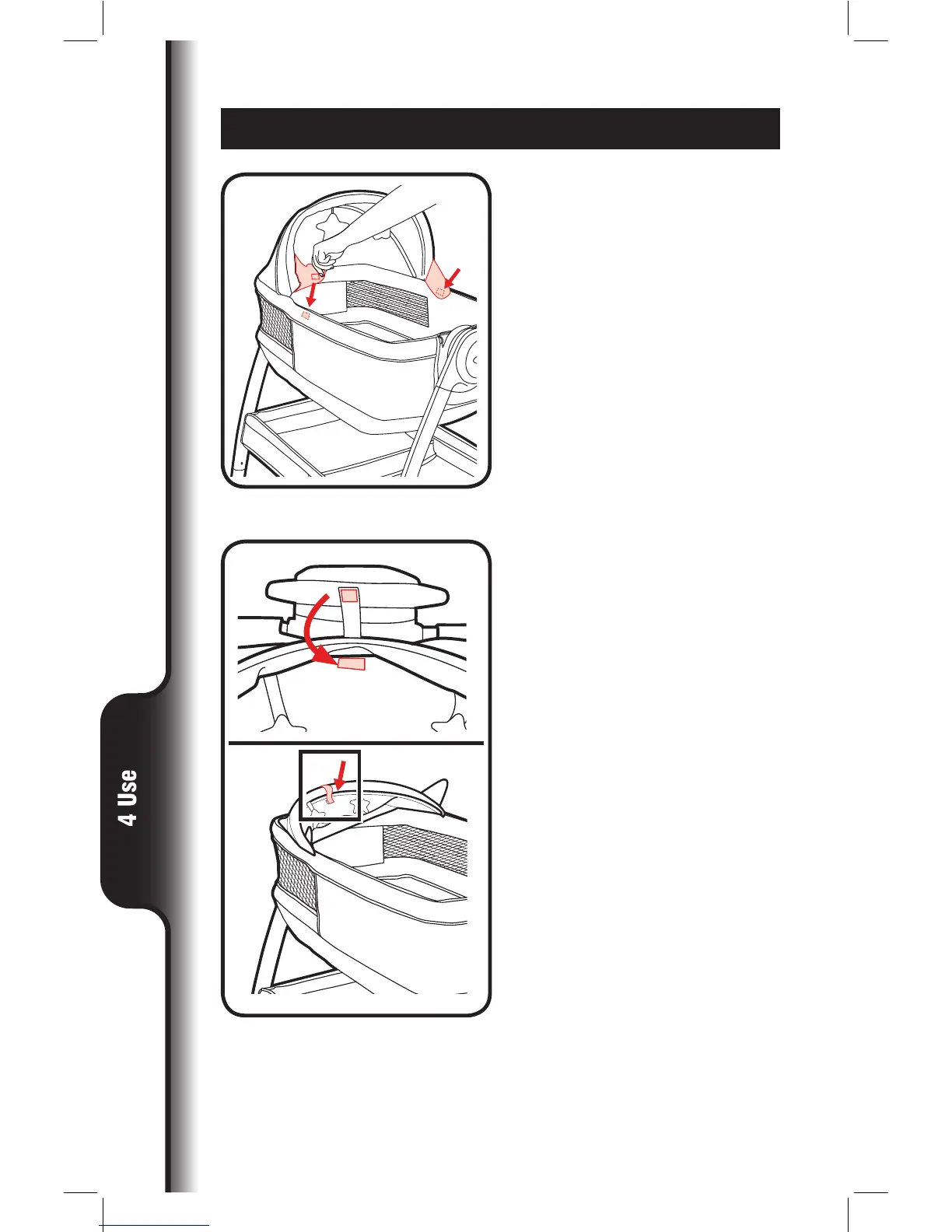 of bassinet to tab in center of