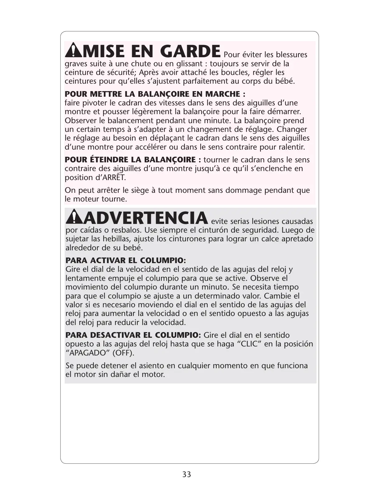 POUR ÉTEINDRE LA BALANÇOIRE : tourner le cadran dans le sens