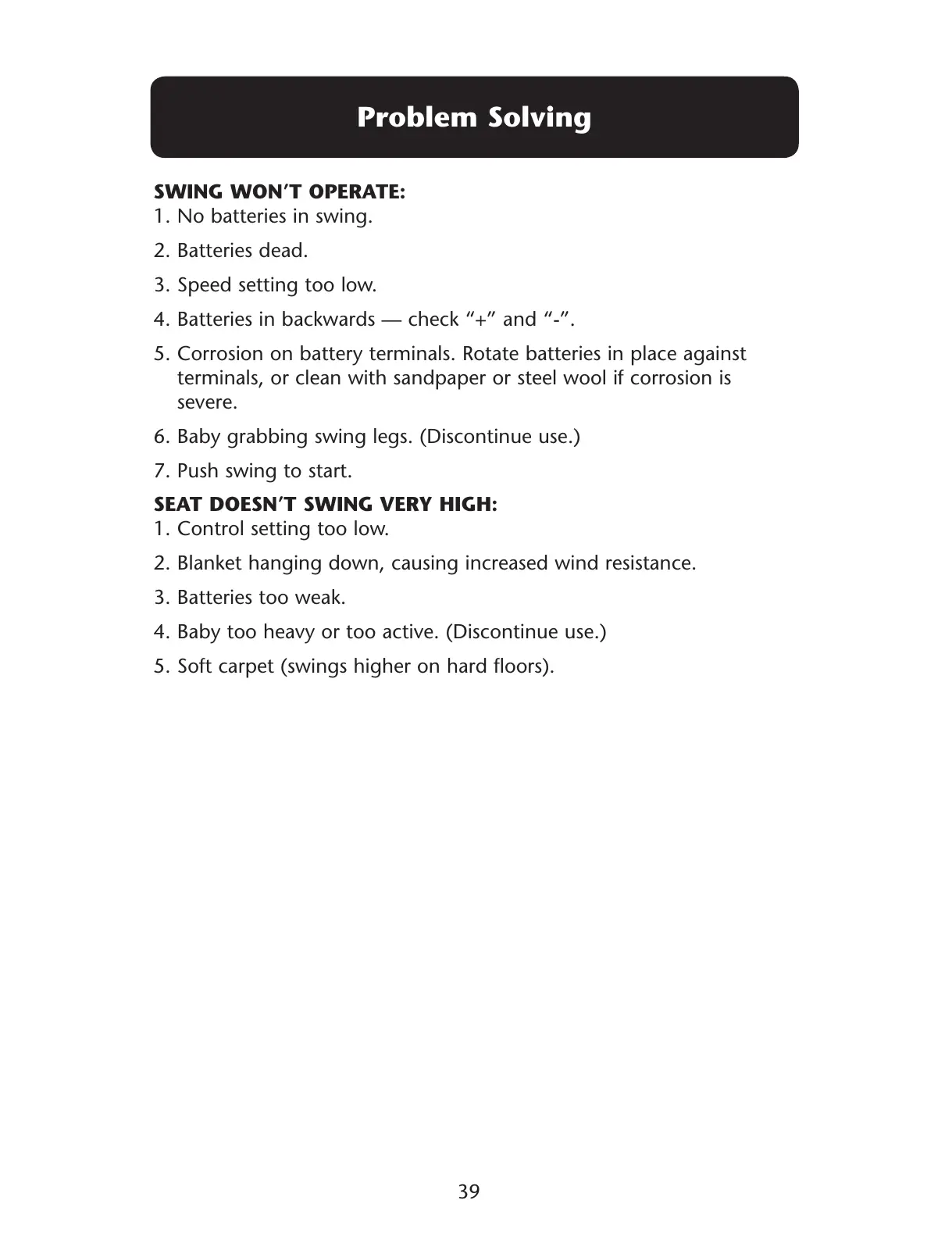 SWING WON’T OPERATE: