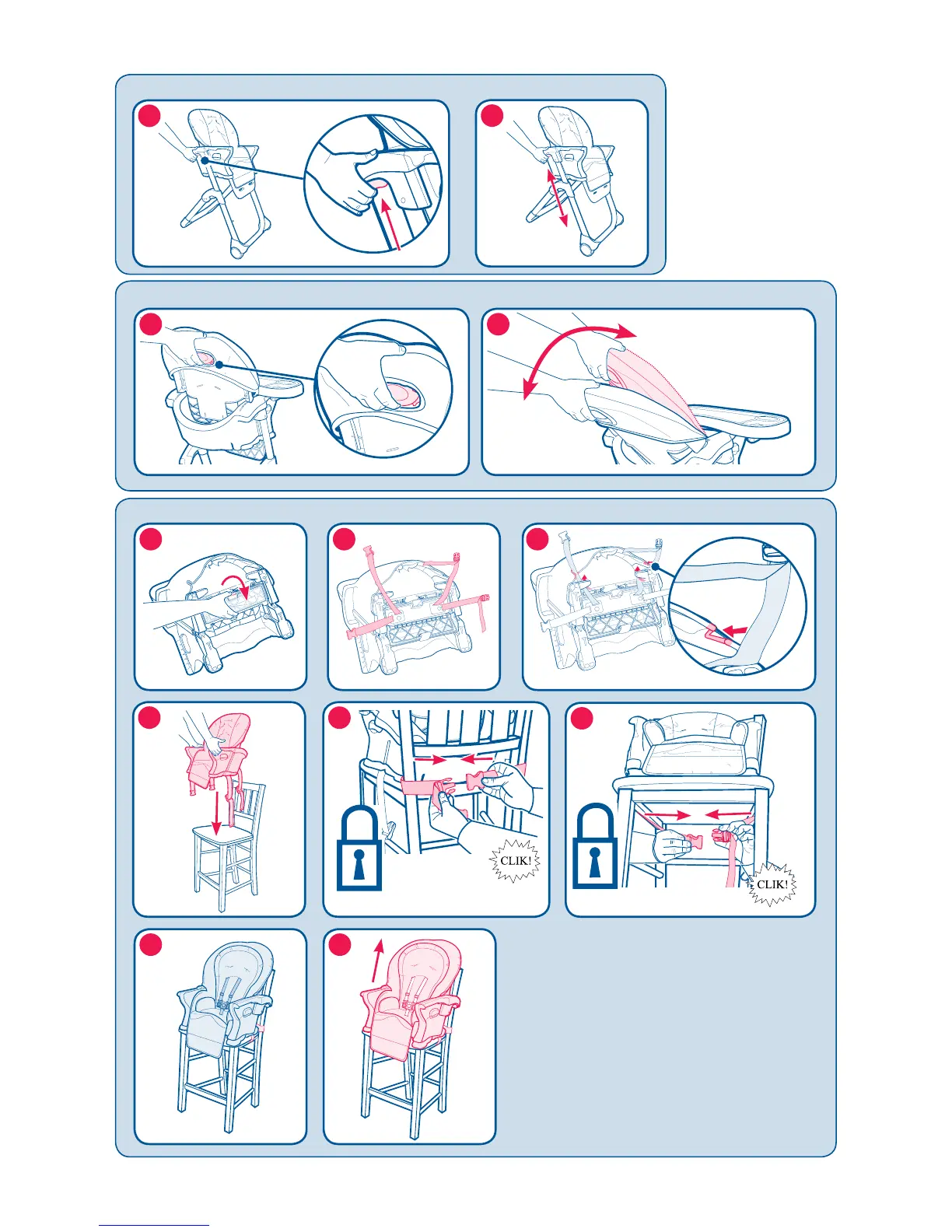 Graco DuoDiner - Height and Recline Adjustments; Booster Seat Attachment to Chair