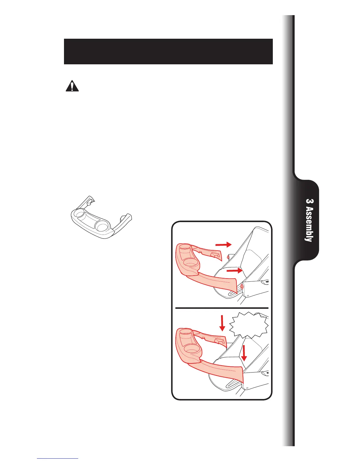 care when snapping the arm bar or tray on the stroller with a child in the