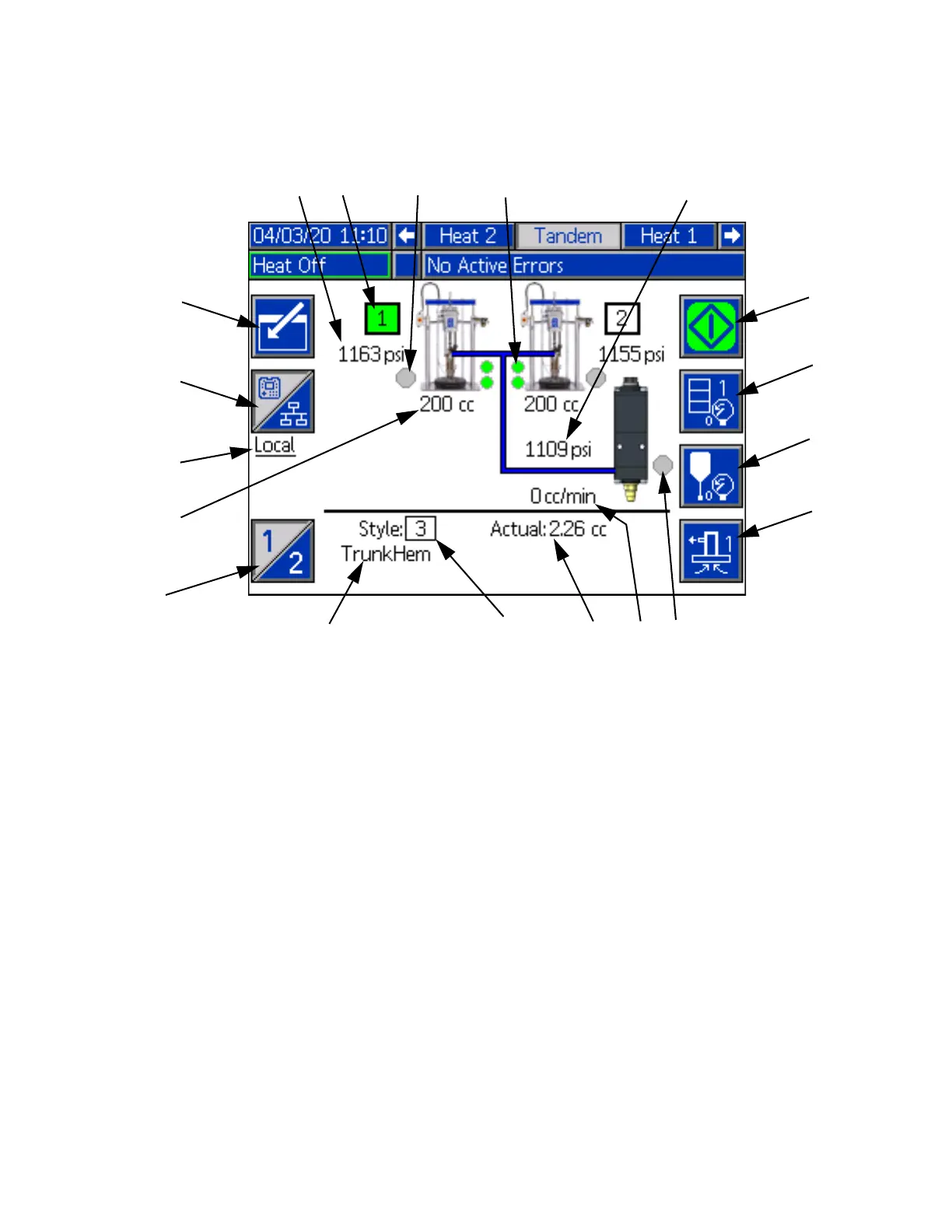 pump depressurization. Green is on, gray is off.