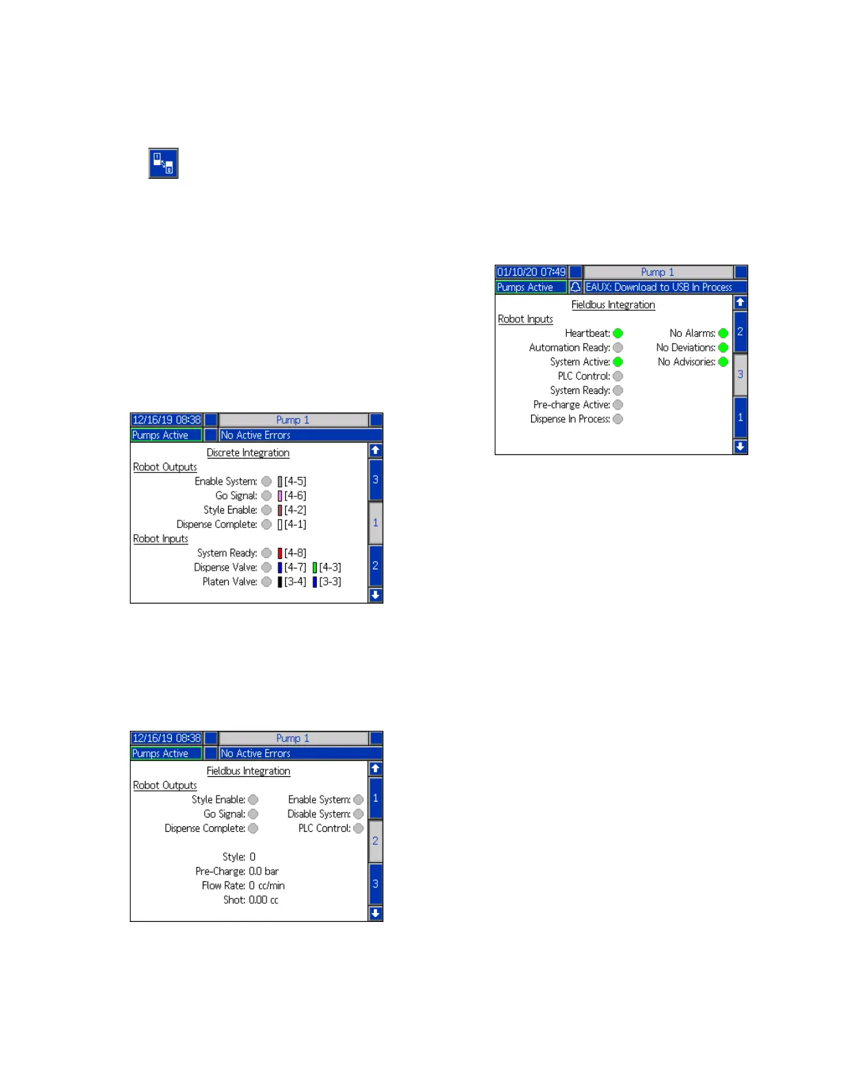 Fieldbus Integration Robot Outputs Screen