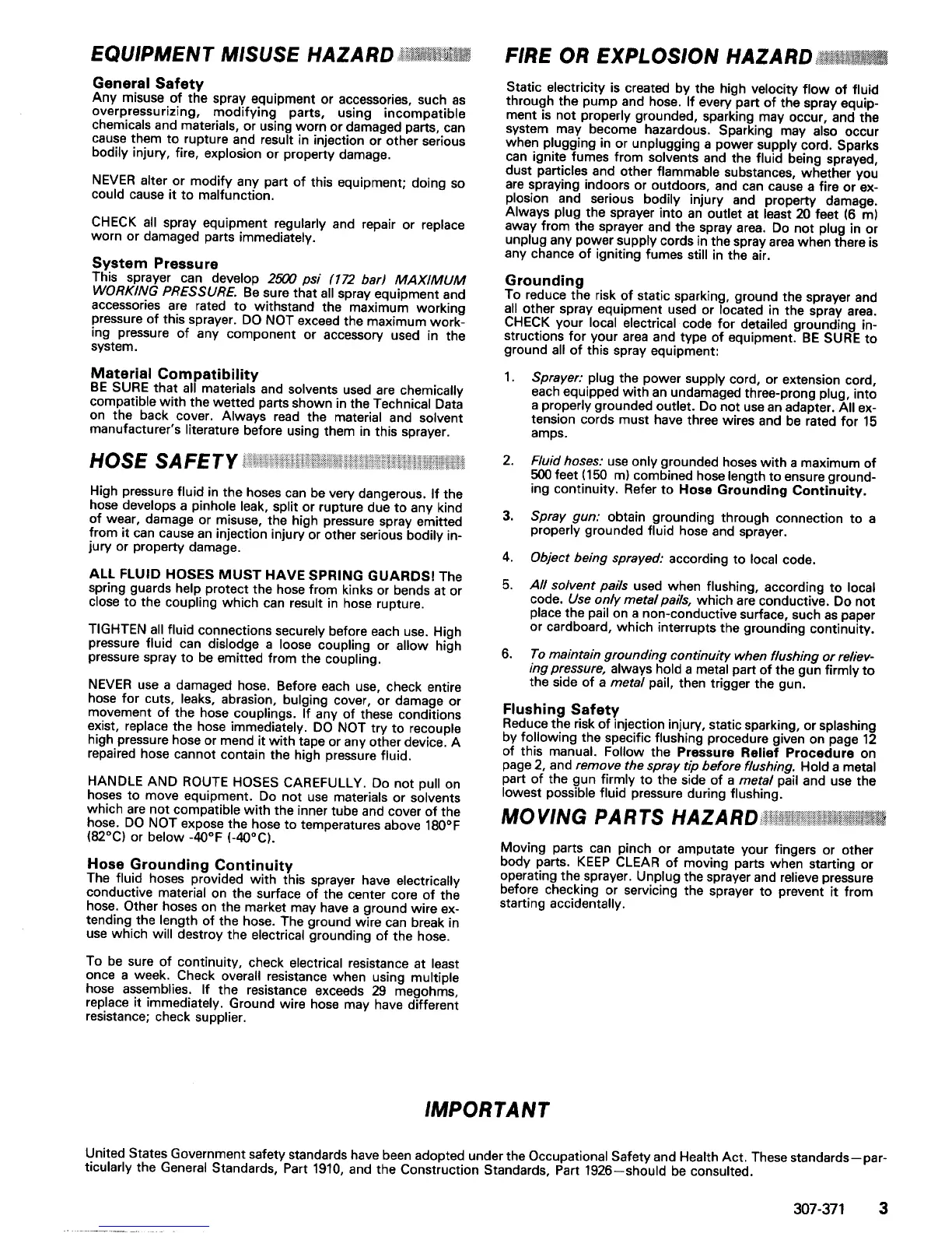 Graco EM 380 - EQUIPMENT MISUSE HAZARD; General Safety; HOSE SAFETY; Hose Grounding Continuity