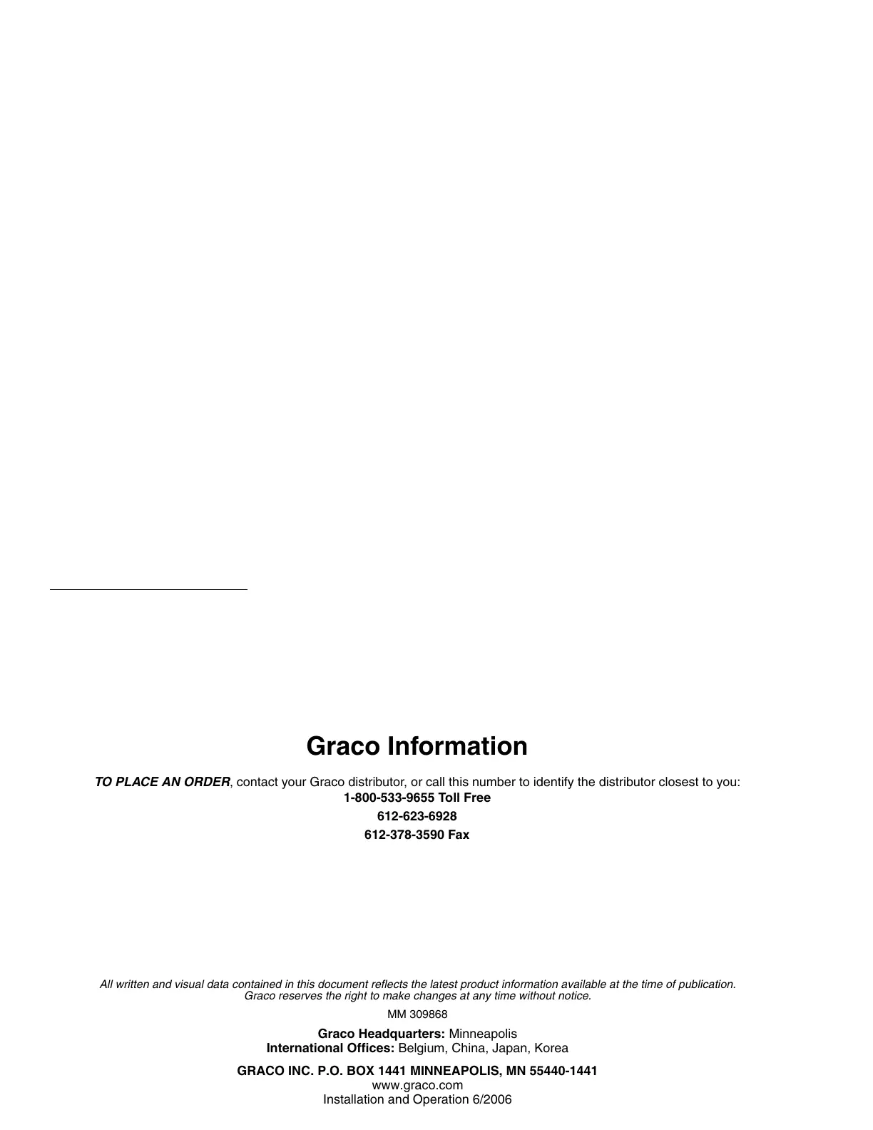 TO PLACE AN ORDER, contact your Graco distributor, or call this number to identify the distributor closest to you:
